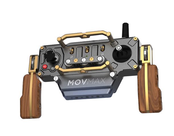 El controlador inalámbrico MOVMAX Incontrol para DJI Ronin ofrece un control preciso y personalizable del cardán hasta una distancia de 150 m (492') a través de la banda de 2,4 GHz, con velocidades y zonas ajustables en los tres ejes, centrado con un solo clic, botón de grabación, joysticks telescópicos de fibra de carbono, empuñaduras de madera extraíbles y batería intercambiable de 3350 mAh 18650 con una autonomía de hasta 15 horas; totalmente compatible con DJI RS 4 Pro, RS 4, RS 3 Pro y RS 2 (excepto el RS 3).