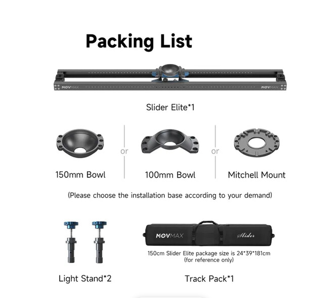 El MOVMAX Slider Elite 47" es un resistente slider de aluminio para cámara con una recorrido de 47,2" y un carro con fijación Mitchell, capaz de soportar hasta 55,1 lb de carga gracias a su sistema de deslizamiento manual continuo basado en fricción, con control de freno y amortiguador. El paquete incluye dos adaptadores para trípode de 5/8" y una funda de transporte para grabaciones profesionales in situ.