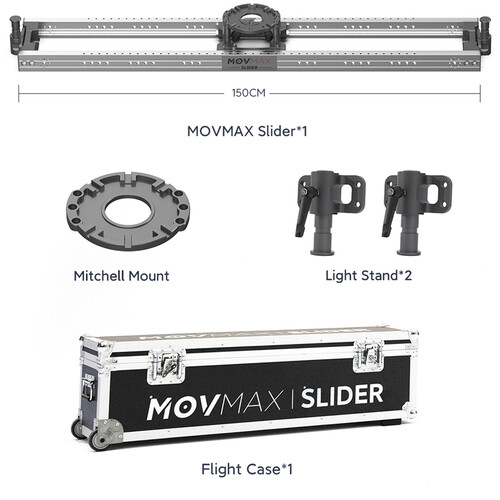 El rail MOVMAX con soporte Mitchell (1500 mm) es un rail profesional de aluminio de 59 pulgadas, ideal para lograr movimientos de cámara fluidos y precisos. Está equipado con un sistema de deslizamiento basado en fricción e incluye un carro de seguimiento con soporte Mitchell, lo que permite diversos modos de desplazamiento y traslación.