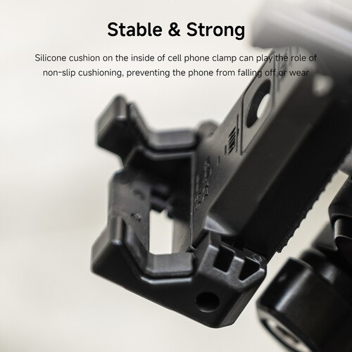 El soporte universal para teléfono MOVMAX Ball Head Phone Holder convierte cualquier smartphone en un accesorio de cámara profesional gracias a su robusta abrazadera con resorte, que sujeta con seguridad dispositivos de entre 2,4 y 3,6 pulgadas de ancho. Un único botón de bloqueo de gran tamaño permite un control instantáneo de la rotación de 360°, la inclinación de 90° y el posicionamiento completo, lo que permite un encuadre preciso en cualquier orientación. La base está equipada con una rosca interna estándar de 1/4"-20 para la conexión directa a soportes de ventosa MOVMAX, trípodes o el sistema Blade Arm, mientras que otras dos roscas internas de 1/4"-20 permiten la ampliación con luces, micrófonos o soportes secundarios. Este soporte compacto de color negro está fabricado en una resistente aleación de aluminio con acolchado protector de silicona y componentes de plástico, mide tan solo 2,6 x 2,3 x 1" y pesa solo 0,295 lb, lo que lo convierte en una herramienta ligera e imprescindible para cineastas móviles, vlogueros y creadores de contenido que necesitan una sujeción flexible y firme para su teléfono.