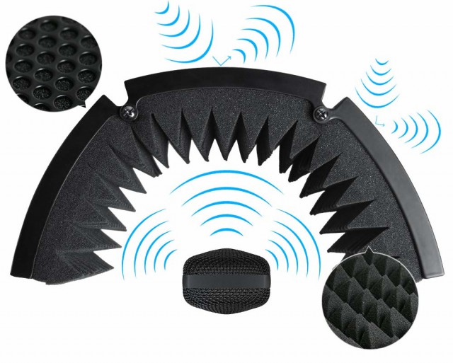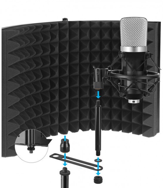 Es ideal para grabar voces, podcasts, locuciones, etc. La pared interior está fabricada con espuma acústica de alta calidad que absorbe el ruido, mientras que la pared exterior está recubierta por una estructura de aluminio que garantiza un transporte y almacenamiento seguros. La pantalla se puede fijar a un soporte de micrófono.