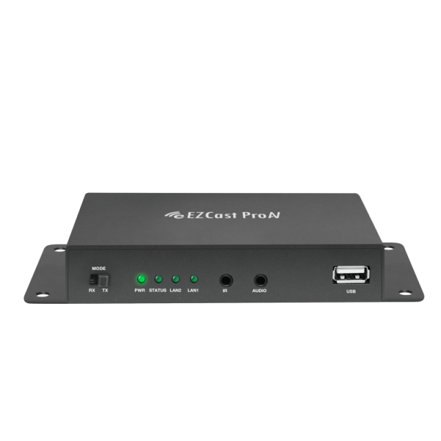 El dispositivo EZCast ProAV se caracteriza por su conexión plug-and-play, elimina la configuración compleja y es compatible con IGMP snooping para optimizar el uso del ancho de banda. La función conmutable TX/RX ofrece flexibilidad para las funciones de transmisión y recepción, lo que lo convierte en una solución escalable para la distribución AV.