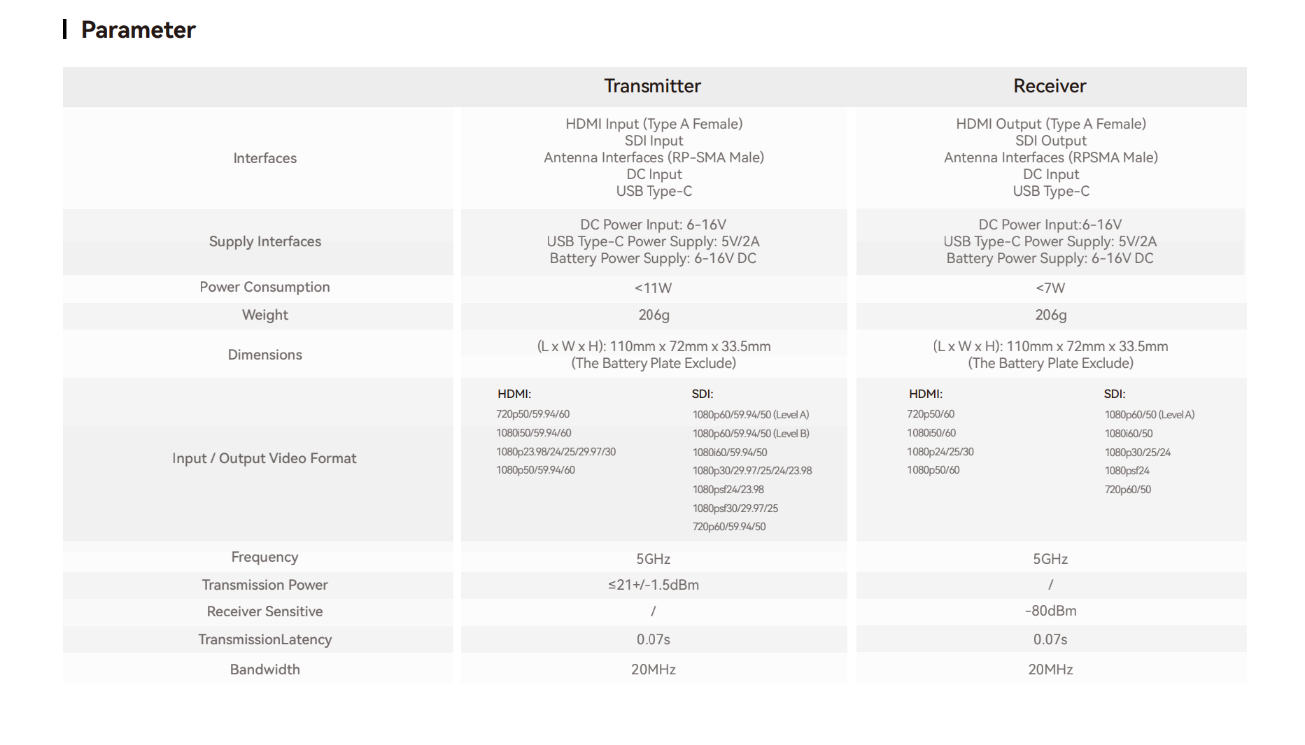 ● Latencia ultrabaja de 0,08 s (TX)