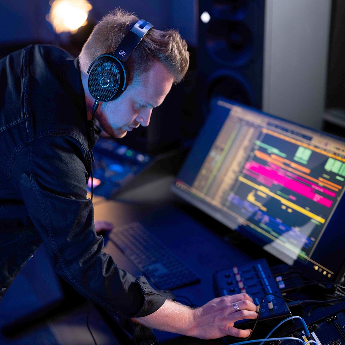 Además de los micrófonos y sistemas inalámbricos de alta gama de Sennheiser, en nuestra tienda también puedes elegir entre una amplia gama de auriculares de esta prestigiosa marca alemana, incluyendo el legendario modelo de estudio HD 280 Pro, el clásico HD 25 para grabaciones en exteriores o sesiones de DJ, o el nuevo modelo de referencia para estudio HD 490 Pro. Auriculares dinámicos circumaurales abiertos HD 490 Pro —presentados a principios de este año— ¡por fin los tenemos en stock! Ofrecen una reproducción muy fiel con una respuesta en frecuencia equilibrada (5–36 000 Hz) y una distorsión mínima (<0,2 % a 1 kHz, 100 dB SPL) para grabación, mezcla y masterización; además, se suministran con un par de almohadillas para ajustar la respuesta en frecuencia (para una reproducción fiel o con un ligero realce de graves, p. ej., para la producción musical). El fabricante ha prestado la misma atención a la comodidad del usuario, ya sea mediante el diseño del arnés o la posibilidad de conectar el cable al auricular izquierdo o derecho (además, la estructura del cable se ha diseñado para minimizar la transmisión de ruido por contacto). Los auriculares tienen una impedancia de 130 ohmios (1 kHz), una sensibilidad de 105 dB SPL (1 kHz / 1 Vrms) y un peso de 260 g (sin cable). El paquete incluye también una licencia del innovador complemento dearVR MIX-SE de Dear Reality para simular la acústica de salas de escucha ideales...
