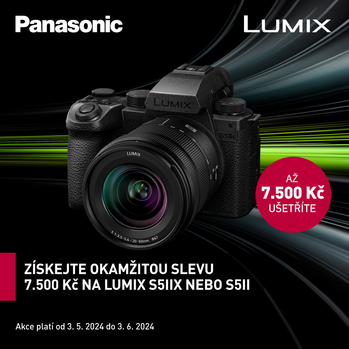 Del 3 de mayo al 3 de junio de 2024, se aplican descuentos de 7.500 CZK (IVA incluido) a los kits de cuerpos LUMIX S5M2 o S5M2X con los objetivos LUMIX S 20-60 mm f/3,5-5,6 + LUMIX S 50 mm f/1,8 (kit «W») o LUMIX S 24-105 mm f/4,0 Macro OIS («M») o LUMIX S 20-60 mm f/3,5-5,6 («K»). El descuento se aplica introduciendo el código S5PROMO524 (para los productosS5M2WE / S5M2XWE, S5M2ME / S5M2XME y S5M2KE / S5M2XKE) y no se puede combinar con la promoción simultánea «objetivo al 50 %». Todas las promociones actuales de Panasonic LUMIX de forma clara aquí...