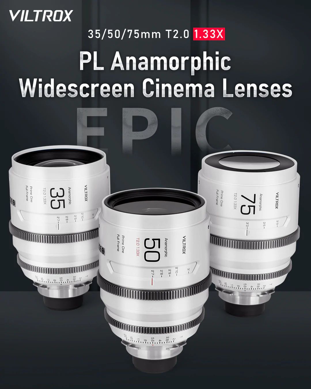 Próximamente disponibles los nuevos objetivos de la marca Viltrox, incluyendo tres objetivos cinematográficos para MFT (23, 33 y 56 mm T/1,5), el objetivo gran angular Viltrox AF 13 mm f/1,4 con montura E y autofoco, el primer objetivo profesional de la marca con montura X: Viltrox AF 75 mm f/1,2 XF Pro, ¡y también los primeros kits de objetivos cinematográficos de alta gama, anamórficos (1,33x) con montura PL (35, 55 y 75 mm T/2,0)!