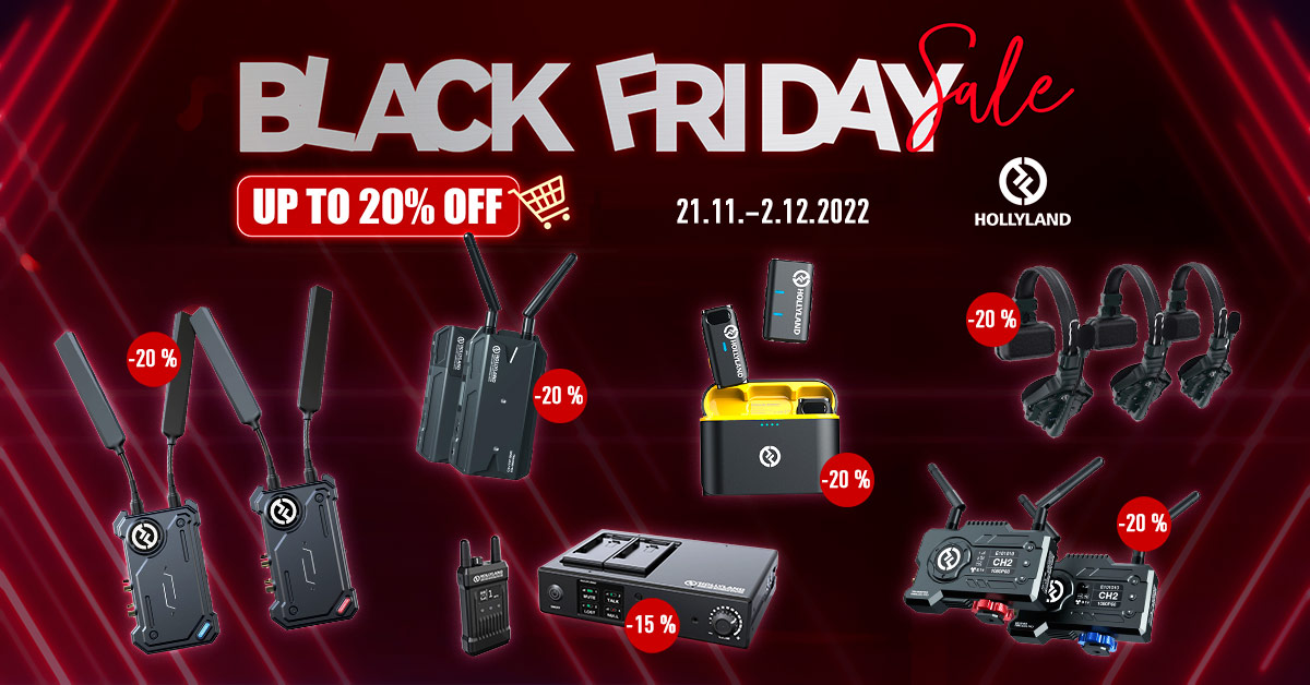 Del 21 al 2 de diciembre de 2022 se aplican los precios del Black Friday en productos seleccionados de la marca Hollyland. Los productos Mars 300, Mars 400S, Solidcom C1, Cosmo C1 y Lark M1 están a la venta con un 20 % de descuento, y los modelos T1000 con un 15 %. La oferta es válida únicamente durante el periodo indicado o hasta agotar las existencias del fabricante.