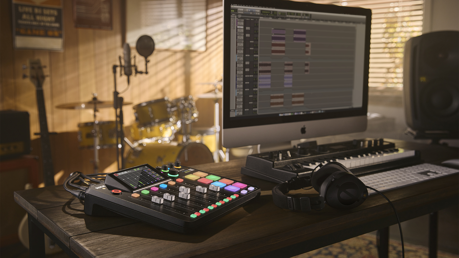 Ya disponible: nueva mesa de mezclas compacta RodeCaster Pro II, diseñada específicamente para podcasters, streamers y músicos que necesitan preamplificadores de alta calidad combinados con conectividad moderna. Cuenta con cuatro conectores combinados Neutrik para conectar micrófonos e instrumentos, preamplificadores de última generación «Revolution Preamp» con un ruido propio muy bajo (-131,5 dBV), una ganancia de 76 dB y alimentación fantasma, grabación multipista en tarjeta SD/disco USB, así como efectos que emulan dispositivos de la marca Aphex (Aural Exciter, Big Bottom, Compellor) para un procesamiento de sonido de alta calidad. La mesa ofrece un total de nueve canales —incluidos seis canales profesionales y tres virtuales— y ocho botones (pads) totalmente programables, por ejemplo, para activar efectos, enviar comandos MIDI, etc. La perfecta integración de la mesa con ordenadores, teléfonos y otros dispositivos está garantizada por las interfaces USB-C (2x), Wi-Fi y Ethernet.