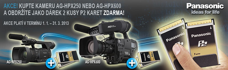 Compre con nosotros una cámara Panasonic AG-HPX250 o un modelo Panasonic AG-HPX600 entre el 1 de enero de 2013 y el 31 de marzo de 2013 y recibirá como regalo dos tarjetas P2 totalmente gratis.