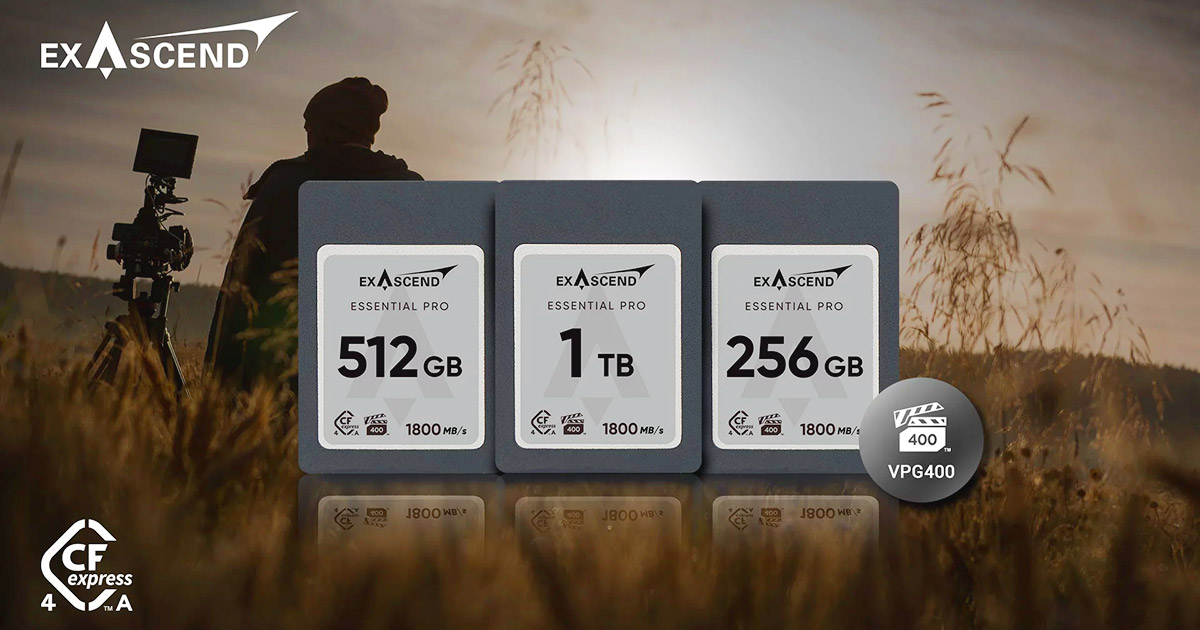Exascend presenta nuevas tarjetas de memoria CFexpress 4.0 Tipo A. Los nuevos modelos «Essential Pro» son compatibles con el estándar CFexpress 4.0 presentado en agosto de 2023 —que permite velocidades teóricas de hasta 4 GB/s (Tipo B) y 2 GB/s (Tipo A)— y estarán disponibles en capacidades de 256 GB, 512 GB y 1 TB, con velocidades de lectura/escritura de hasta 1800/1650 MB/s. Las tarjetas integran la interfaz PCIe Gen4 x1 y corrección LDPC ECC, cuentan con la certificación VPG400 («Video Performance Guarantee Profile 4»), que garantiza una grabación fiable de vídeo de hasta 8K/120 fps, y están protegidas por una garantía de 10 años; la compatibilidad con las cámaras Sony (A1, A7S III, A7 IV, FX3, FX6...) es un hecho. A la venta a partir de finales de marzo.
