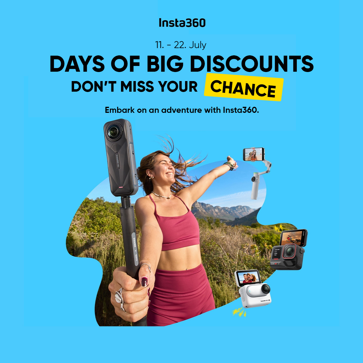 Tenemos una gran noticia para ti:¡del 11 al 22 de julio de 2025 hay una promoción de descuento limitada en toda una gama de productos seleccionados de la marca Insta360! Tanto si grabas vídeos de acción, haces streaming o buscas la cámara compacta perfecta para viajar, ahora es el momento ideal para ampliar tu equipo y ahorrar al mismo tiempo.