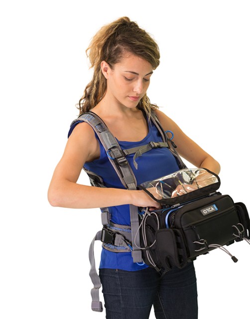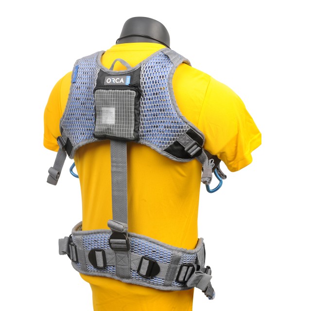 El arnés ligero y transpirable Orca OR-40 Sound Bag Harness se puede acoplar a cualquier bolsa de audio Orca para aligerar el peso del equipo durante la grabación.