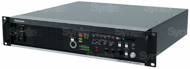La unidad de control de cámara AK-UCU500 permite manejar cámaras de estudio Panasonic (entre los modelos compatibles se encuentran la AK-UC3000 y la AK-HC5000) a gran distancia mediante cableado óptico.