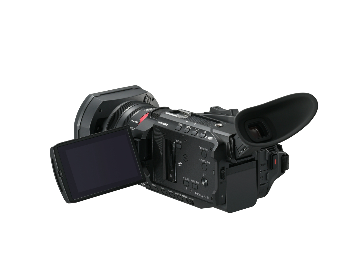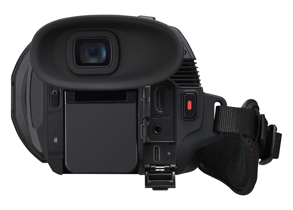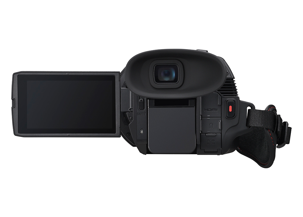 Videocámara 4K semiprofesional: compacta y ligera, con grabación a 60p, objetivo gran angular de 25 mm, zoom óptico de 24× y un gran visor OLED. Disponible a partir de abril de 2025.