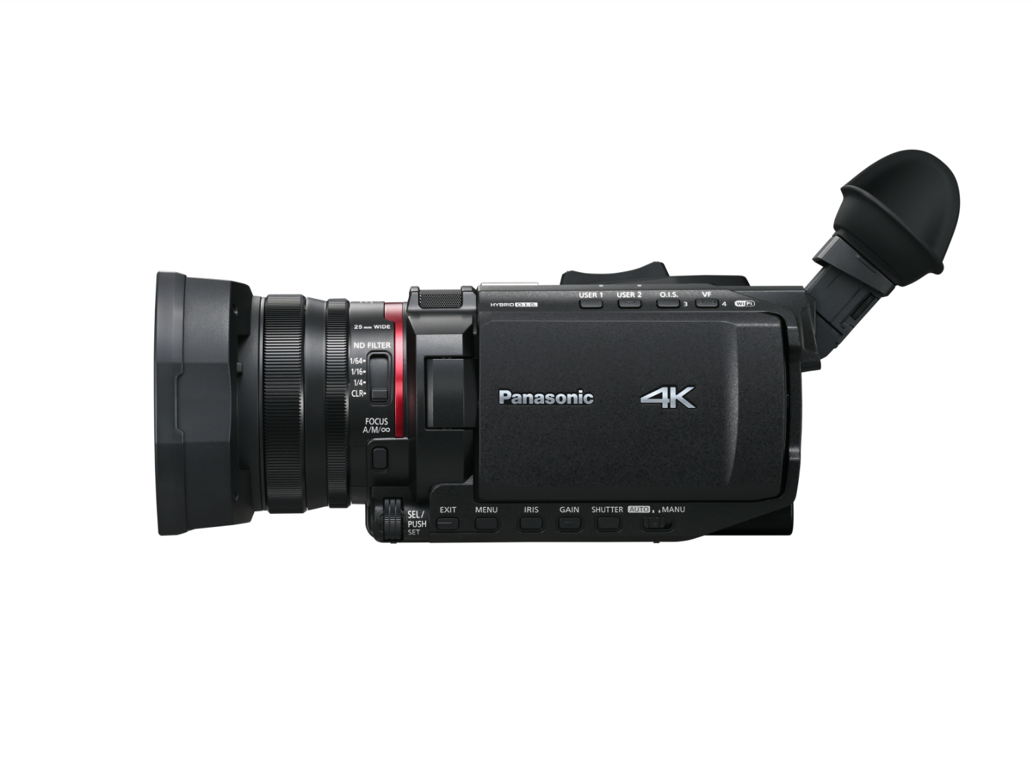 • Control profesional: filtro ND / 2 ranuras para tarjetas SD / Wi-Fi / transmisión en directo Full HD