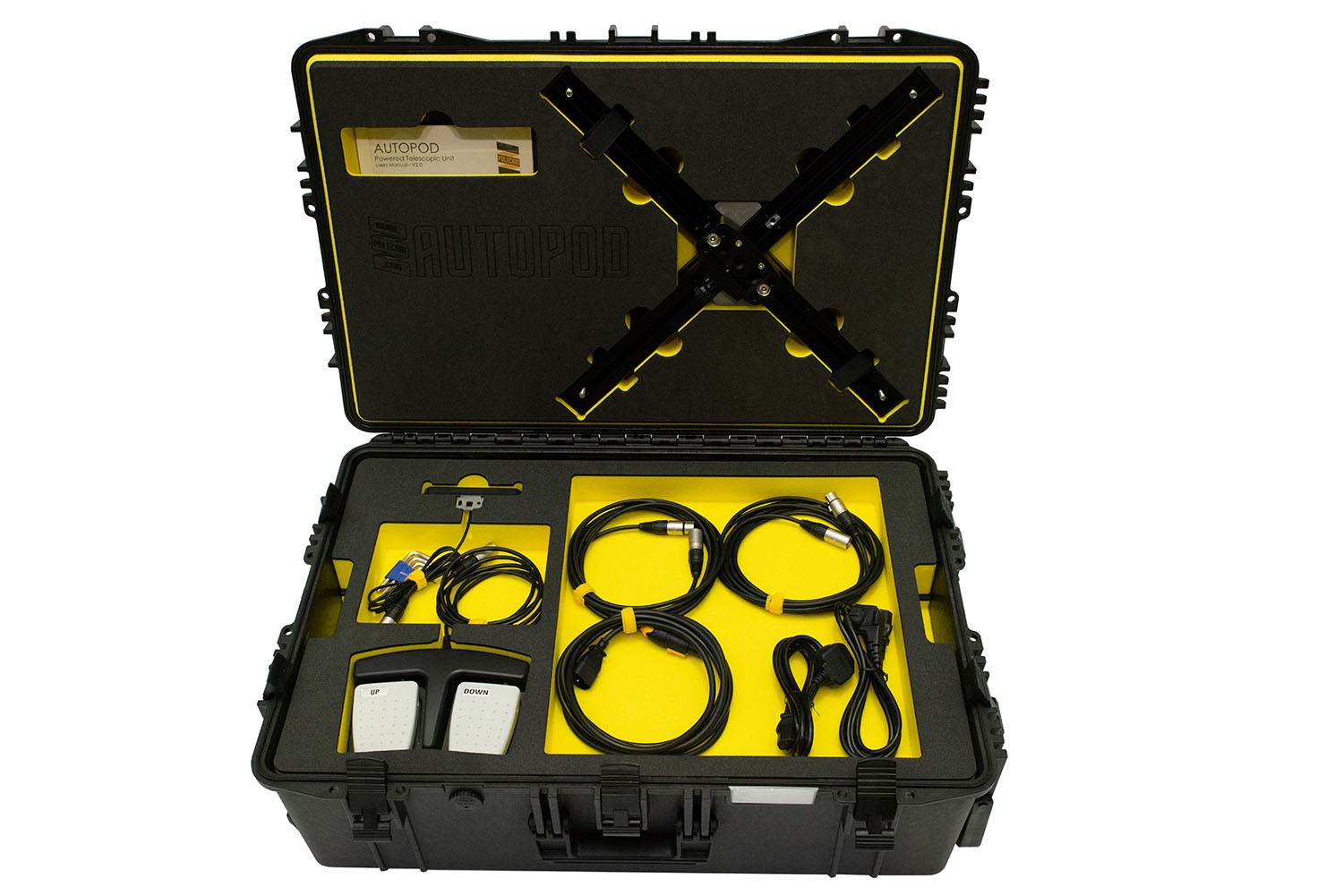 PanaPod se suministra en un maletín de transporte rígido con revestimiento protector de espuma, que ofrece espacio para hasta dos unidades (y los accesorios incluidos y opcionales). La plataforma se puede instalar en cuestión de minutos, incluido el montaje de la cámara mediante una placa de fijación rápida, y admite una carga de hasta 35 kg (25 kg en el caso de dos unidades combinadas), por ejemplo, cámaras adicionales mediante un adaptador en forma de T opcional.