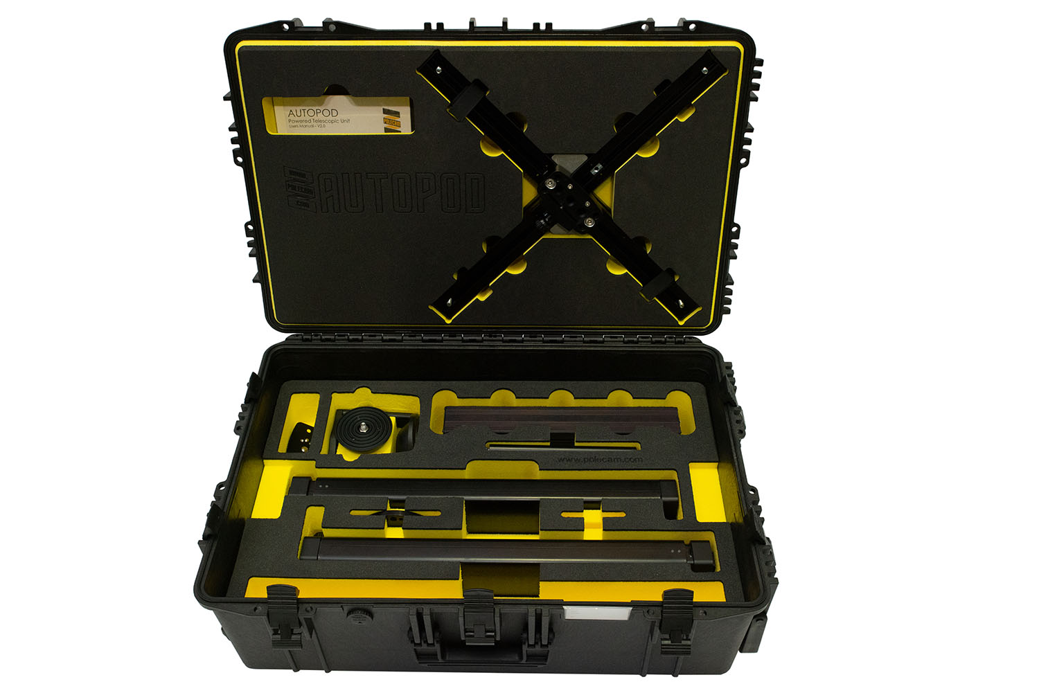 PanaPod se suministra en un maletín de transporte rígido con revestimiento protector de espuma, que ofrece espacio para hasta dos unidades (y los accesorios incluidos y opcionales). La plataforma se puede instalar en cuestión de minutos, incluido el montaje de la cámara mediante una placa de fijación rápida, y admite una carga de hasta 35 kg (25 kg en el caso de dos unidades combinadas), por ejemplo, otras cámaras mediante un adaptador en forma de T opcional.