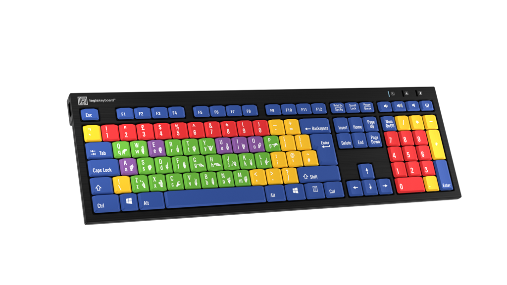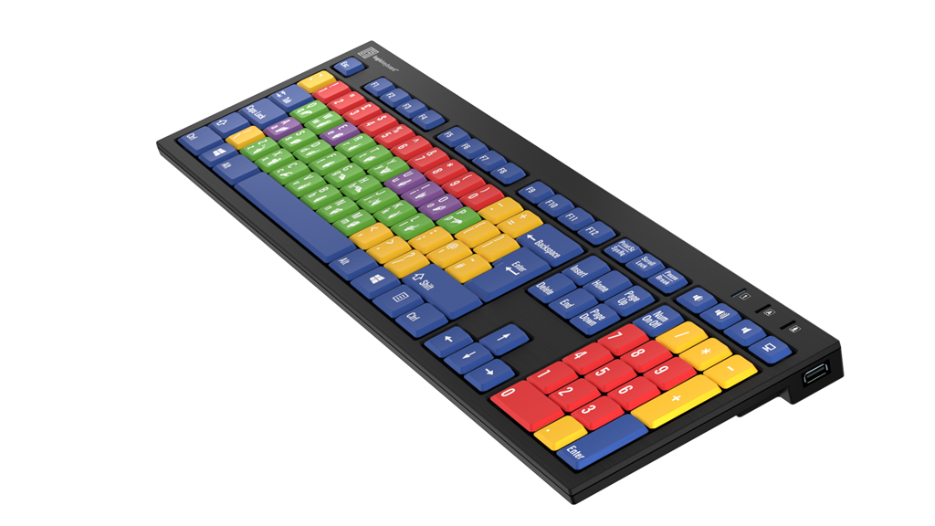El teclado delgado Logickeyboard, diseñado para la enseñanza de los niños. Inicie a los alumnos de primaria en el mundo del teclado y las habilidades informáticas con el Kids Learning Keyboard, una herramienta excepcional pensada para la enseñanza. Este teclado, que cuenta con vocales, consonantes, números y teclas de función diferenciadas por colores, ayuda a los usuarios a familiarizarse con la distribución de un teclado estándar de calidad.
