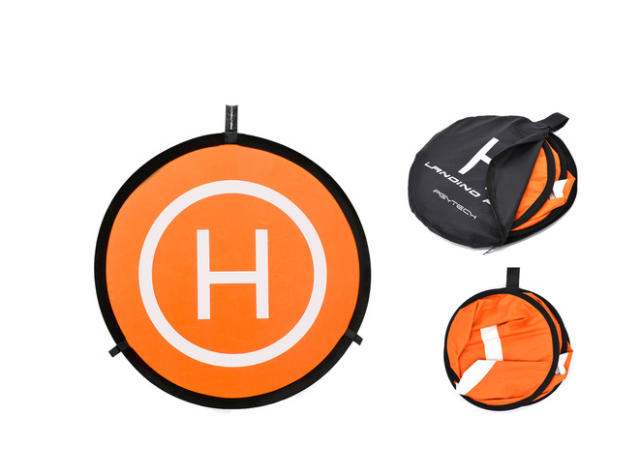 La plataforma de aterrizaje está diseñada pensando en la portabilidad: al abrirla, se despliega automáticamente hasta adoptar la forma correcta y se puede plegar de forma compacta para que quepa en la funda de nailon con cremallera incluida, lo que facilita su transporte. Para mayor estabilidad, el kit incluye tres piquetas que fijan la plataforma y evitan que el viento se la lleve. Esta plataforma de aterrizaje, ligera pero resistente, es ideal para su uso en el campo y garantiza la protección del cardán y la cámara de tu dron en cada vuelo.
