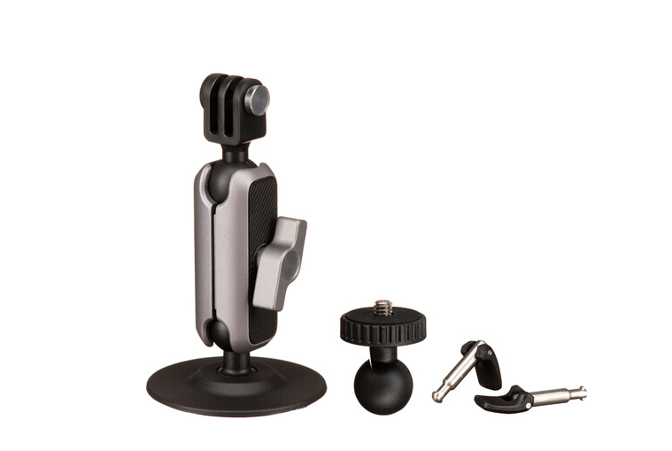 La base utiliza adhesivo 3M VHB de alta resistencia, que proporciona una excelente adherencia y durabilidad en condiciones exteriores exigentes. El soporte incluye un adaptador de tres puntos extraíble para cámaras de acción y un perno roscado de 1/4"-20, lo que lo hace compatible con una amplia gama de cámaras de acción y dispositivos compactos de hasta 1,5 kg de peso.