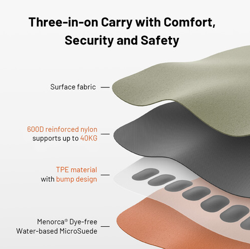 • Fabricada en nailon 600D reforzado, resistente y ecológico