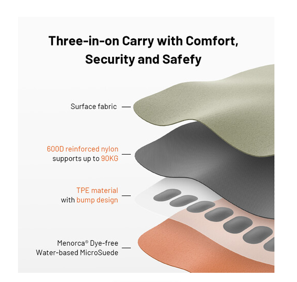 La correa trenzada de Dyneema con cierres rápidos facilita la fijación o desmontaje rápido de la cámara y, al mismo tiempo, soporta una carga de hasta 90 kg. El forro de TPE con patrón antideslizante aumenta la comodidad y evita que se deslice, incluso durante un uso prolongado. Esta correa está diseñada para ser transpirable, ligera y elegante gracias a su patrón geométrico, y es ideal tanto para fotógrafos ocasionales como profesionales.