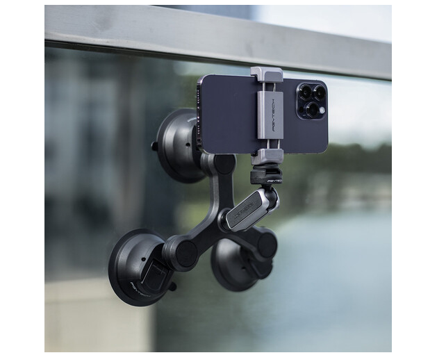 El soporte con ventosas de 3 brazos PGYTECH P-GM-224 con rótula CapLock está diseñado para cineastas, vloggers y creadores de contenido que necesitan una fijación estable de la cámara en vehículos, ventanas u otras superficies planas. Sus tres ventosas de alto rendimiento proporcionan una mayor estabilidad y sujeción, y cada ventosa se puede inclinar hasta 45° para una colocación óptima.