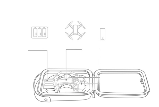 Compartimentos especialmente diseñados para el dron DJI Tello y sus accesorios