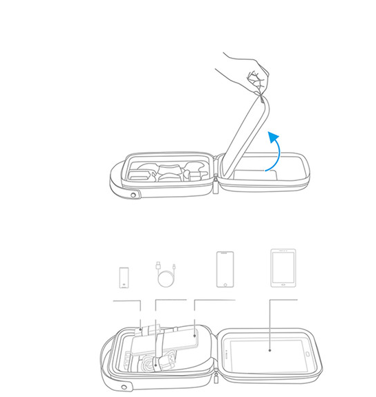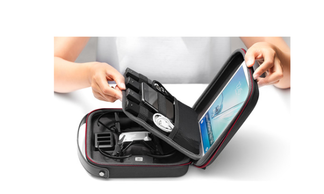 Capacidad para el dron, la cubierta de las hélices, las baterías, el concentrador de carga, los cables USB, las tarjetas SD, un smartphone y una tableta de 7,9"
