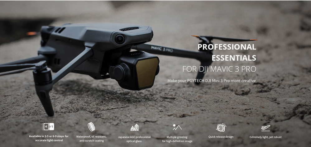 El juego de 4 filtros PGYTECH ND/PL para DJI Mavic 3 Pro (P-43A-034) está diseñado para cineastas aéreos que necesitan un control preciso de la luz y la reducción de reflejos en cualquier condición de luz diurna. Este juego incluye filtros ND8/PL, ND16/PL, ND32/PL y ND64/PL, que combinan los efectos de los filtros neutros y polarizadores. Cada filtro reduce la cantidad de luz que entra en el sensor para lograr una exposición correcta y, al mismo tiempo, minimizar los reflejos en el agua, el cristal o las superficies brillantes.
