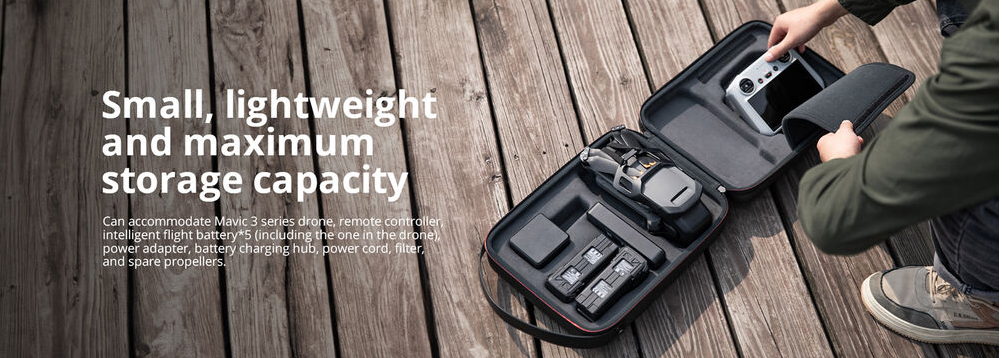 Capacidad para el Mavic 3 plegado, el controlador DJI RC PRO/RC/RC-N1, 2 baterías de vuelo inteligentes, un concentrador de carga y un adaptador de corriente