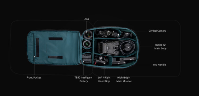 La mochila PGYTECH P-CB-245 para DJI Ronin 4D es una solución integrada que combina un almacenamiento seguro con la posibilidad de utilizar el sistema de estabilización Ronin 4D durante los desplazamientos. La mochila está diseñada para transportar el kit completo del Ronin 4D y utiliza separadores ajustables con velcro para organizar de forma eficaz el cuerpo del estabilizador, las baterías, los objetivos y los accesorios.
