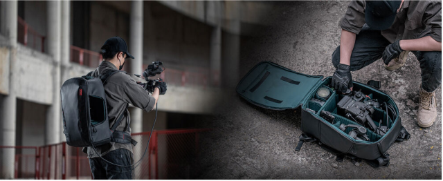 Además de servir para el transporte, esta mochila se convierte en una plataforma operativa móvil gracias al clip PGYTECH Beetle Clip integrado, que fija de forma segura el cuerpo principal del Ronin 4D en el interior de la mochila. Este diseño reduce el tamaño del equipo y, al mismo tiempo, mejora el equilibrio y la comodidad durante el uso. Los clips ajustables para fijar la cámara, junto con las correas pectorales y lumbares desmontables, ayudan a distribuir el peso de manera uniforme y reducen significativamente la fatiga del operador durante las sesiones de grabación prolongadas.