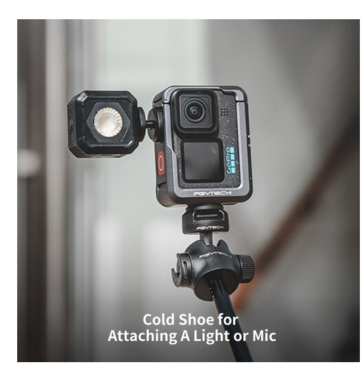 Con el soporte PGYTECH Smartphone Cold Shoe Tripod Mount, puedes fijar tu smartphone