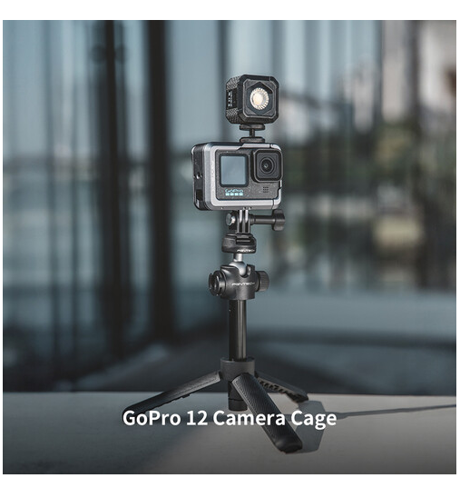 La jaula para cámara PGYTECH (P-46C-010) es una estructura de aluminio de fabricación precisa diseñada para la GoPro HERO12 y compatible con las modelos HERO11, HERO10 y HERO9. Ofrece varias opciones de fijación, cambio rápido entre orientación vertical y horizontal y un bloque de batería magnético integrado para una grabación ininterrumpida, lo que la convierte en la opción ideal para creadores, vlogueros y usuarios de cámaras de acción.