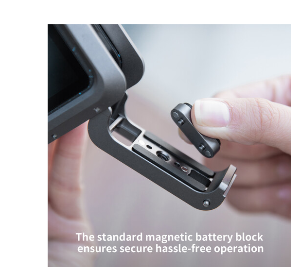 El bloque de batería magnético integrado proporciona una alimentación fiable, mientras que el práctico botón de desbloqueo lateral permite cambiar las baterías o los soportes sin necesidad de desmontar la jaula. El puerto USB-C abierto garantiza una carga continua durante el funcionamiento, lo que convierte a esta jaula en una excelente opción para grabaciones prolongadas, vlogs y la creación de contenido profesional.