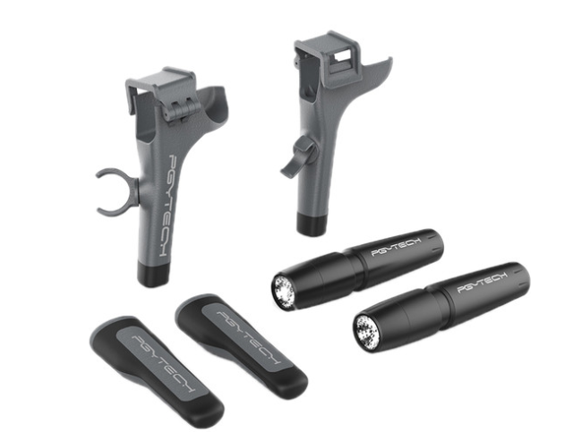 El juego de patas extensibles y luces LED de PGYTECH para el DJI Mavic 2 eleva tu dron 3,5 cm para protegerlo de la suciedad, los residuos y los terrenos irregulares, mientras que las luces LED integradas mejoran la visibilidad durante los vuelos y los aterrizajes en condiciones de poca luz.