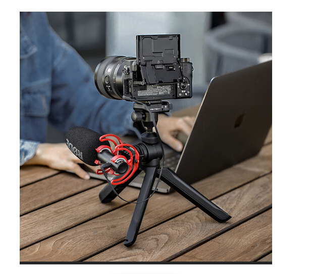 El trípode MantisPod 2.0 está equipado con una rótula tipo Arca y una placa de fijación rápida, lo que permite montar rápidamente la cámara y encuadrar con precisión, con un ajuste de inclinación de hasta 120° y una inclinación vertical de 90°. El soporte giratorio para accesorios permite fijar fácilmente micrófonos, luces LED compactas o monitores, lo que resulta ideal para vlogs y retransmisiones en directo.