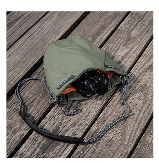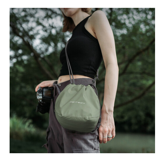 Con la bolsa PGYTECH OneGo Drawstring Bag (Forest) podrás transportar fácilmente tu equipo fotográfico o tus objetos cotidianos. Es compacta, pero a la vez ofrece una protección suficiente y tiene capacidad para una cámara sin espejo pequeña o mediana, un objetivo de repuesto y accesorios. Puedes llevarla en la mano, al hombro o como una bolsa fotográfica dentro de una bolsa más grande. Está equipada con cierres de seguridad y un bolsillo oculto para el AirTag.