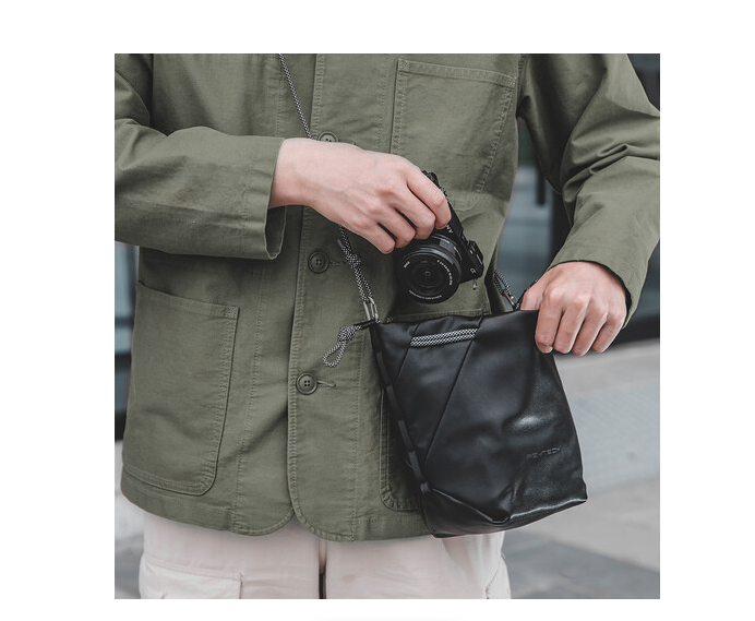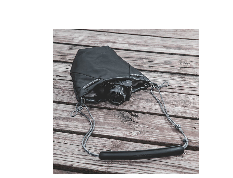 Gracias a su diseño versátil, se puede llevar en la mano, colgada del hombro o dentro de una bolsa más grande como funda para la cámara, lo que ofrece opciones de transporte flexibles para diferentes situaciones fotográficas. El cierre de cordón de seguridad cuenta con broches integrados que evitan que se abra accidentalmente, mientras que el interior acolchado de varias capas protege el equipo de pequeños golpes y sacudidas.