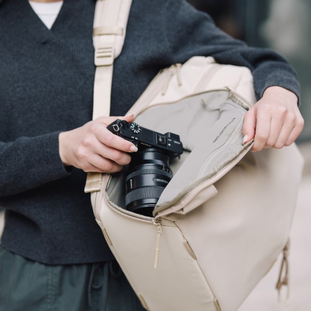 Se puede acceder cómodamente al compartimento principal tanto desde arriba como desde el lateral, lo que permite coger fácilmente la cámara u otro equipo sin necesidad de abrir toda la mochila.