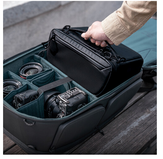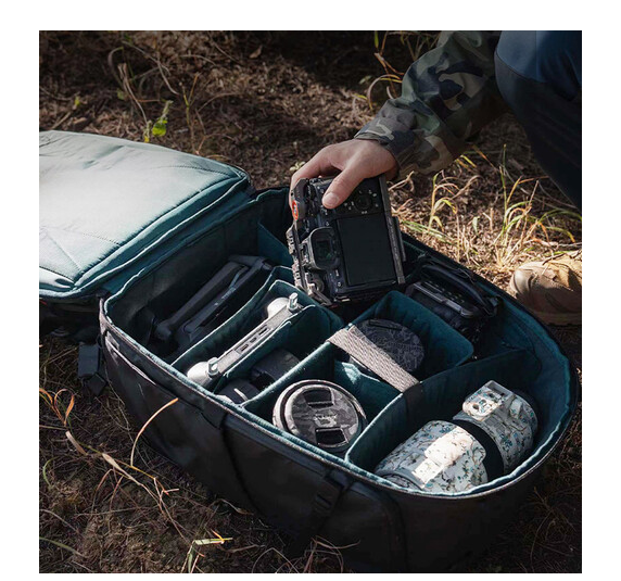 Su espacio interior, estructurado científicamente, ofrece un espacio específico para el equipo fotográfico y los objetos personales, mientras que los separadores resistentes y flexibles permiten una organización segura y personalizable. El compartimento delantero mejorado admite extensiones en forma de V y H, lo que resulta ideal para guardar un estabilizador de cardán u otro equipo. La amplia apertura trasera permite un embalaje plano y los dos puntos de acceso rápido te permiten coger rápidamente los objetivos de largo alcance desde la parte superior o el lado derecho.
