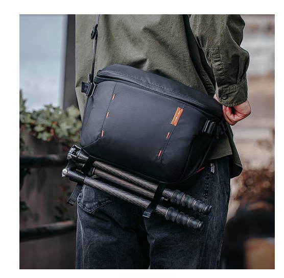 La comodidad y la practicidad se ven reforzadas por una amplia correa de hombro acolchada y transpirable, una correa inferior para el trípode y correas para fijar clips para la cámara o mosquetones. La mochila OneMo Sling está fabricada con materiales resistentes al agua y cuenta con cremalleras YKK, además de incluir un bolsillo oculto para AirTag para mayor seguridad, lo que la convierte en una excelente compañera para viajar, hacer fotos en la ciudad o para las aventuras del día a día.