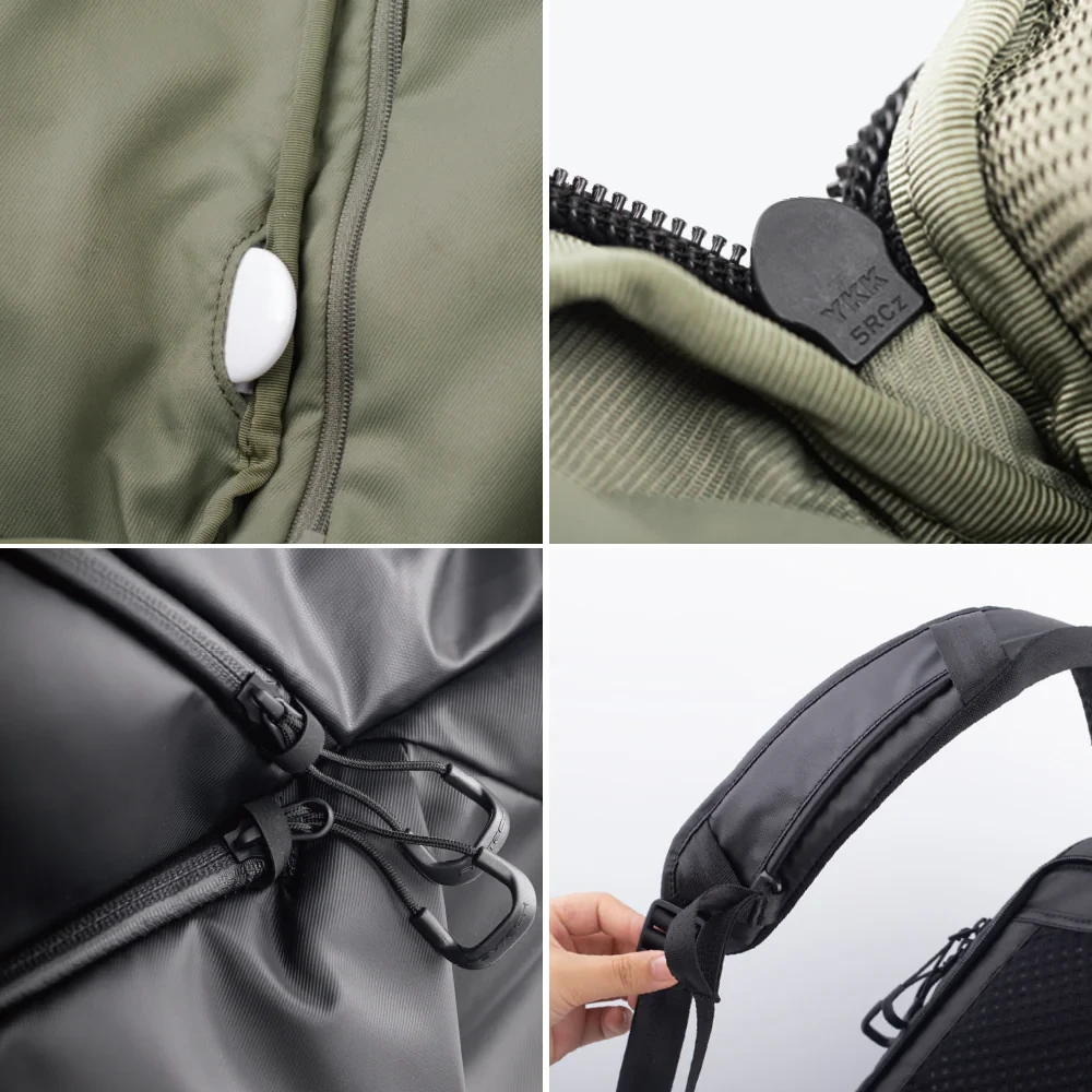 Además, la mochila cuenta con un bolsillo oculto para AirTag, bolsillos para pilas y una parte superior enrollable con hebillas para mayor seguridad. El exterior de la mochila es depoliéster resistente al agua y cuenta con cremalleras YKK de alta calidad para una larga durabilidad y una protección fiable de tus pertenencias.