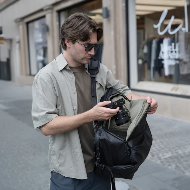 La mochila se puede llevar de varias formas: a la espalda, al hombro o en la mano. Además, la correa extraíble se puede utilizar como bandolera independiente. Su práctica abertura ancha permite acceder rápidamente al contenido; cuenta también con un compartimento especial para el portátil (hasta 16" de pantalla) y separadores flexibles para una organización ordenada.