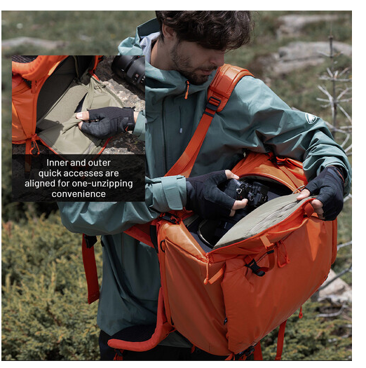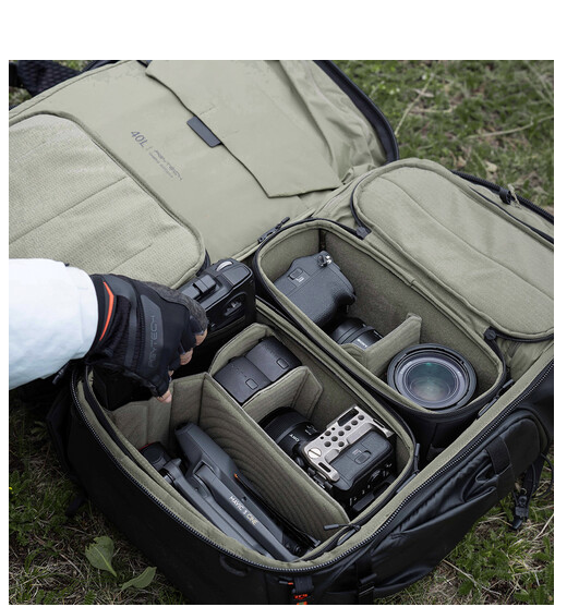 La mochila está fabricada en Cordura recubierta de PU, es resistente al agua y al desgaste. El armazón de aluminio aeronáutico con arco 3D garantiza la estructura y la estabilidad, mientras que las correas de hombro y lumbares moldeadas en 3D, junto con el panel trasero ergonómico de malla transpirable, aseguran una conducción cómoda durante largos periodos de tiempo. El acceso lateral rápido y los bolsillos laterales para botellas de agua aumentan la comodidad al fotografiar, y la longitud de la espalda ajustable en 4 posiciones permite adaptarse a diferentes tipos de complexión.
