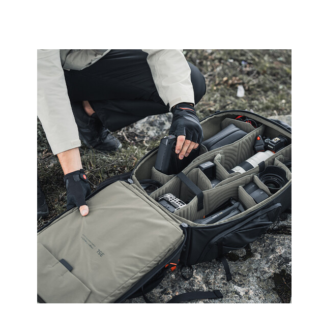 La mochila PGYTECH P-CB-196 OnePro Focux es la opción ideal para fotógrafos, viajeros y amantes de las actividades al aire libre. Con una capacidad de 25 litros, puede albergar cómodamente dos cámaras réflex o sin espejo, nueve objetivos e incluso un dron DJI, además de ordenadores portátiles, tabletas, cargadores y accesorios. El compartimento delantero ampliable, varios bolsillos y asas permiten un almacenamiento versátil del equipo fotográfico, el material de acampada o los objetos de uso diario.