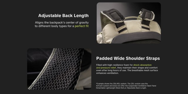 Equilibra el centro de gravedad de la mochila según los diferentes tipos de complexión para un ajuste perfecto.