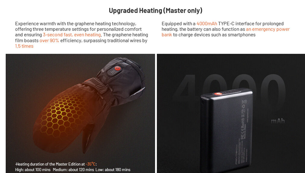 Los guantes PGYTECH P-GM-201 Master Photography Gloves están diseñados para profesionales que fotografían en condiciones invernales adversas. Combinan una tecnología de calefacción avanzada con materiales de primera calidad para proporcionar calor, destreza y protección. El núcleo de los guantes es una capa calefactora de grafeno alimentada por dos baterías tipo C de 4000 mAh, que proporciona un calor rápido y uniforme con tres niveles de temperatura ajustables.
