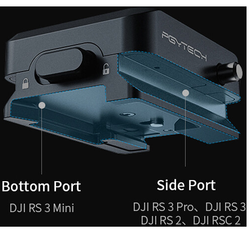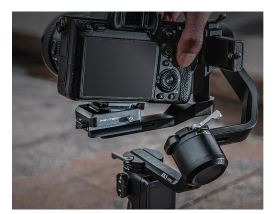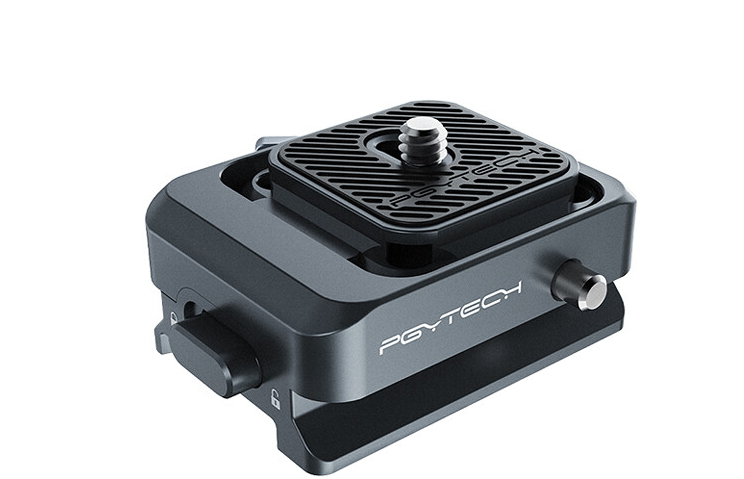 La abrazadera está equipada con un tornillo de fijación de 1/4"-20 en la placa de fijación rápida e incluye varios puertos de fijación, lo que permite la compatibilidad con trípodes, deslizadores u otras abrazaderas PGYTECH. Su diseño no afecta al equilibrio de estabilización de tu gimbal Ronin. La abrazadera es ideal para configuraciones profesionales en las que se requiere una instalación rápida y la posibilidad de intercambiar componentes.